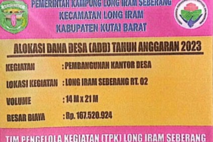 Papan proyek pembangunan Kantor Desa Long Iram Seberang.-(Foto/ Istimewa)-