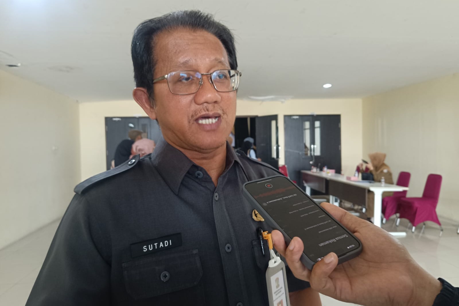 Kepala Kesbangpol Balikpapan, Sutadi, saat diwawancara soal fenomena bendera One Piece.-(Disway Kaltim/ Salsa)-